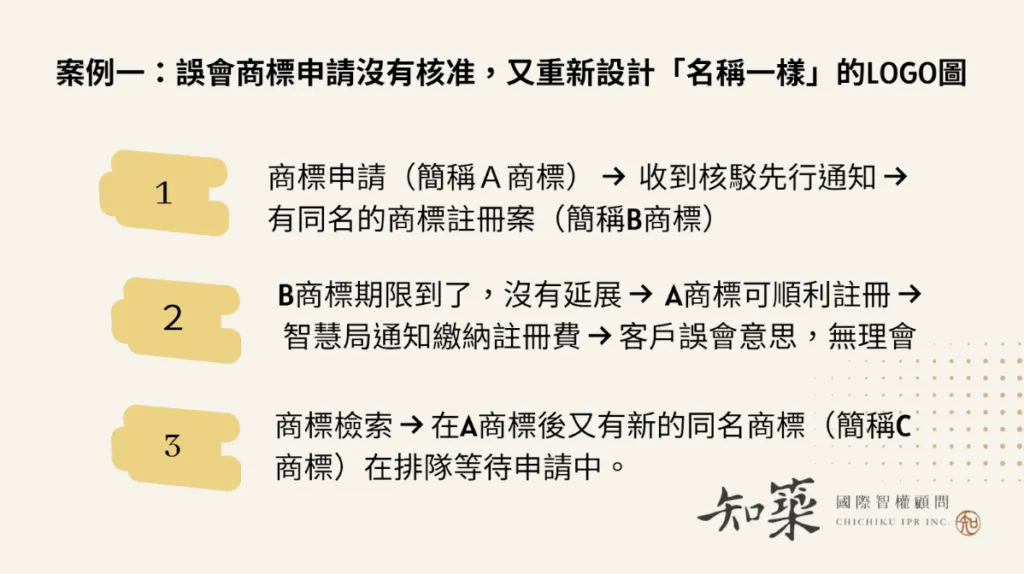 案例一:誤會商標申請沒有核准,又重新設計「名稱一樣」的LOGO圖