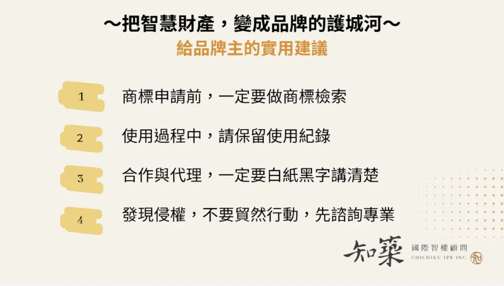 這幾年處理案件的經驗,我也歸納出幾個實用的提醒,分享給品牌經營者: