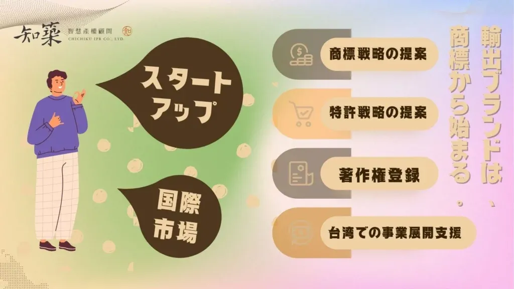 - 台湾は登録主義・先願主義の国であり、ブランドを守るには出願・登録が不可欠です。